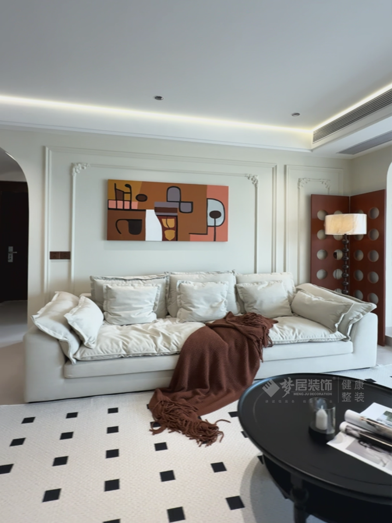 杏子灰+黑白棕裝出溫馨的中古風(fēng)的家,軟裝的適配度也超高,柔和的色調(diào)將時光的故事娓娓道來。