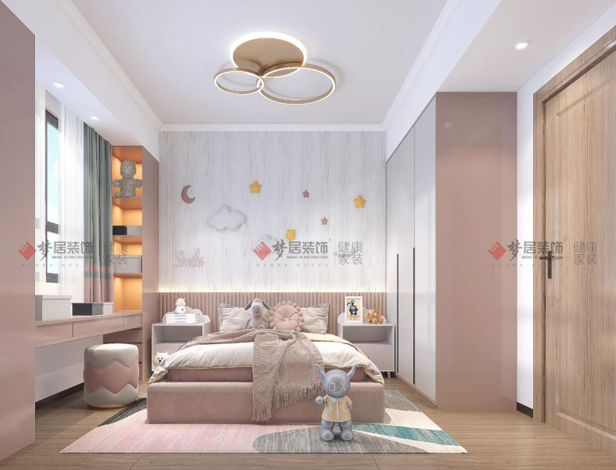 | 設(shè)計說明:本案定位現(xiàn)代風格,整個空間色調(diào)以暖色為主,餐廳以簡約、大方、時尚、舒適為主要表達方向,空間輕盈,動線流暢,整體設(shè)計感互為呼應(yīng)??蛷d電視背景墻以大理石做整面墻的鋪貼處理,大理石紋的灰色和白色交織;一張舒適柔軟的米色沙發(fā),帶來自在優(yōu)雅;除了主光源之外,時尚的燈具點綴著居室,讓室內(nèi)氛圍加分不少,為業(yè)主帶來一份精致的美好。主臥陳設(shè)舒緩放松,簡約明快的色調(diào)搭配簡潔舒適;兒童房緊湊貼合,背景墻以可愛雅致的豆粉色和白色做雙色疊拼,同時在衣柜柜體上做套色呼應(yīng),整體效果上很是可愛精致。 | |||