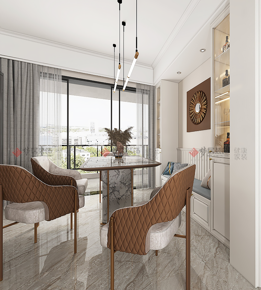 | 設(shè)計(jì)說(shuō)明:設(shè)計(jì)師沒(méi)有用特定的風(fēng)格去界定這套作品,空間交織融和現(xiàn)代、北歐、美式等多種風(fēng)格元素,精煉地碰撞出完美的混搭主義。和諧干凈的空間界面,最終呈現(xiàn)出一種自然舒適的風(fēng)格形態(tài)。設(shè)計(jì)元素多而不雜,空間色彩也盡顯低調(diào)的奢華,家具、軟飾的搭配不拘一格,黃銅搭配現(xiàn)代簡(jiǎn)約的家具,更顯高檔,展現(xiàn)出既復(fù)古又時(shí)尚的精致空間。打破風(fēng)格間的界限,將業(yè)主喜歡的元素在空間中達(dá)成平衡取舍,讓空間以隨性而自由的姿態(tài)展現(xiàn)在業(yè)主面前,達(dá)到空間的舒適性、和諧性的統(tǒng)一。 | |||