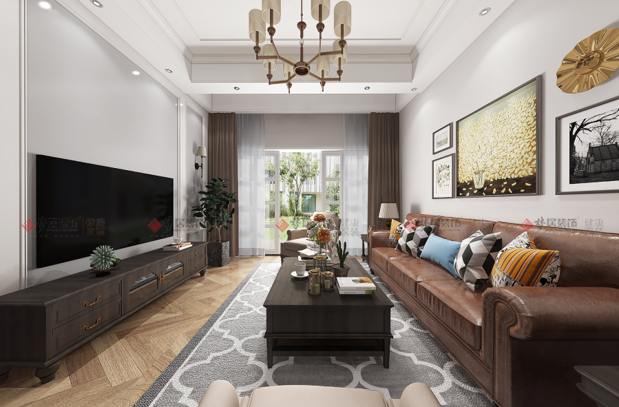 | 設(shè)計(jì)說(shuō)明:傳統(tǒng)美式風(fēng)格裝修沉穩(wěn)大氣卻也容易過(guò)于老氣,而簡(jiǎn)美風(fēng)格設(shè)計(jì)是對(duì)傳統(tǒng)美式裝修做出了繼承與發(fā)展,將空間裝飾、色彩、照明等設(shè)計(jì)元素經(jīng)過(guò)簡(jiǎn)化提煉后,營(yíng)造出休閑自由且符合現(xiàn)代審美及生活需求的簡(jiǎn)約美式風(fēng)格空間。恰到好處的美式風(fēng)格設(shè)計(jì)元素,呈現(xiàn)美式家居自由隨性的空間氛圍??蛷d空間規(guī)劃整潔干凈,造型簡(jiǎn)潔的吊頂提升空間層次,富有質(zhì)感的家具讓空間顯得更加華貴;色彩以暖色為主,休閑舒適,明亮開(kāi)朗??臻g整潔有序,造型簡(jiǎn)約但不失設(shè)計(jì)感的搭配呈現(xiàn)出高級(jí)的質(zhì)感。美式家具的古樸優(yōu)雅,簡(jiǎn)化了的美式元素線條更流暢,在保持美式風(fēng)格的休閑浪漫同時(shí),又給人自然現(xiàn)代的感受,打造空間休閑浪漫氣息。 | |||