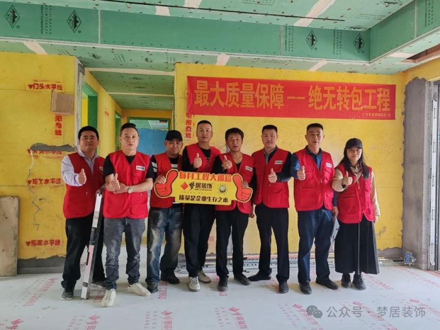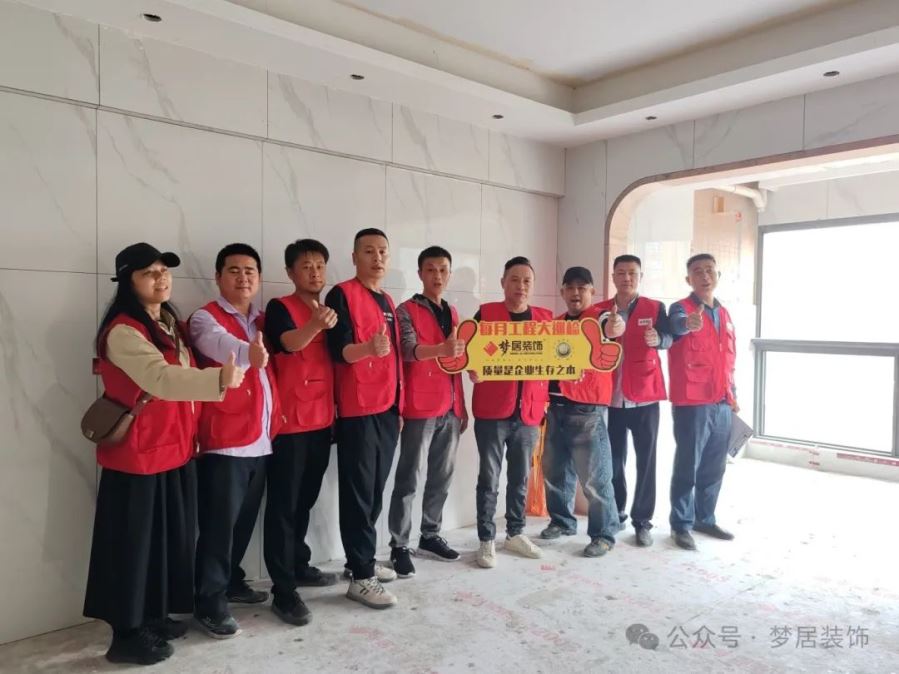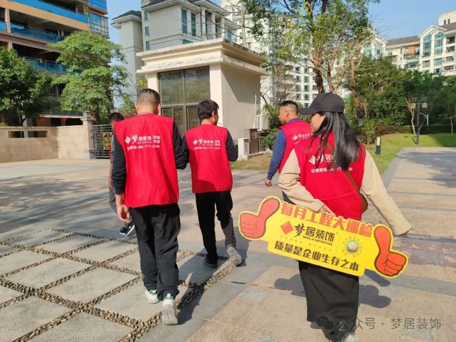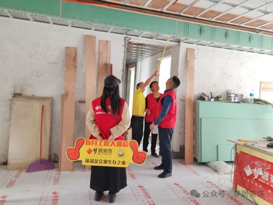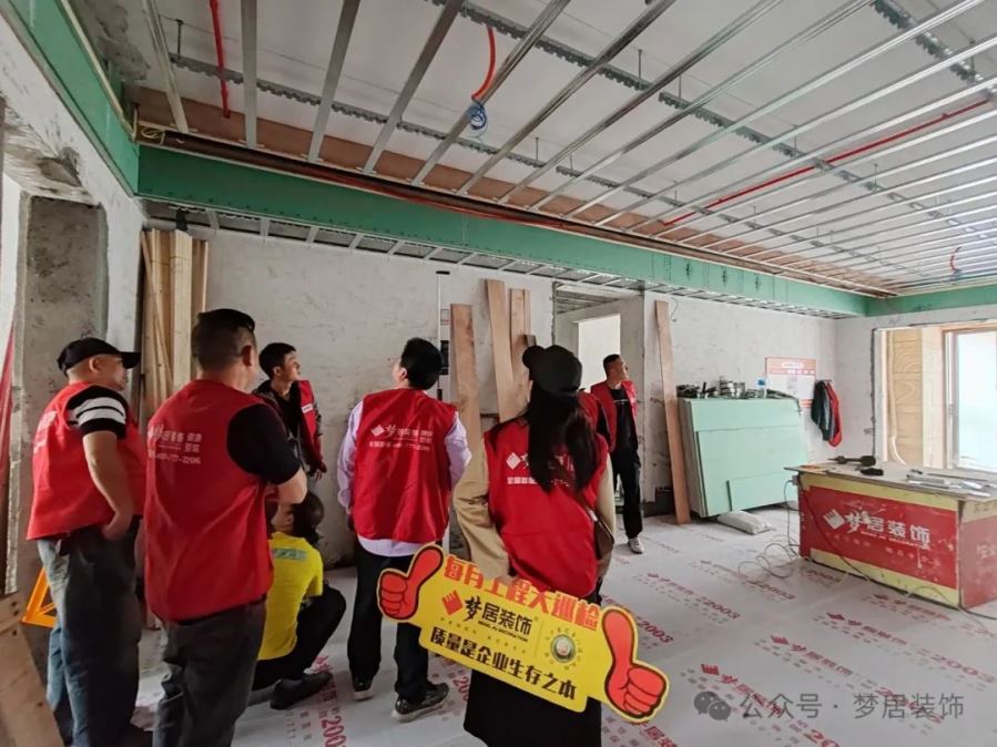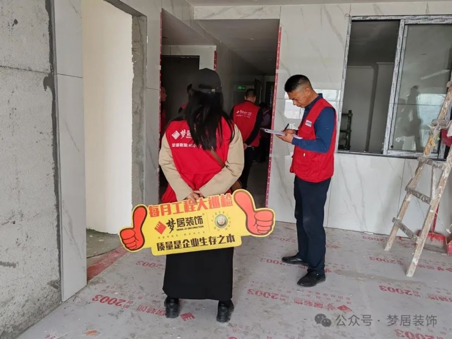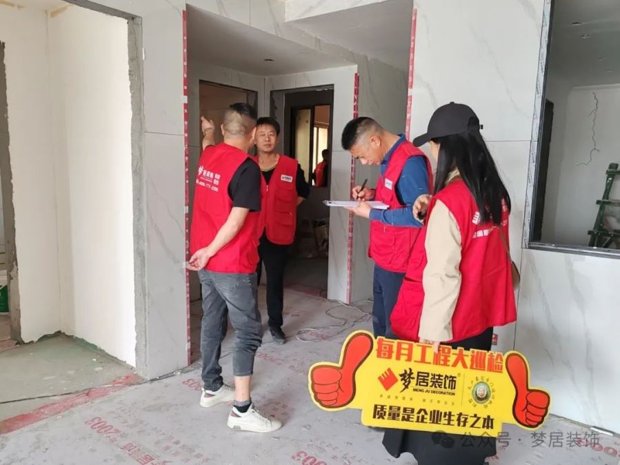 夢居每月工地大巡檢,共同監(jiān)督解決施工過程中發(fā)現(xiàn)的問題,促進(jìn)工程順利進(jìn)行。細(xì)致完善的巡檢制度以及強(qiáng)化質(zhì)量要求,進(jìn)一步提高施工質(zhì)量和效率,為裝修項(xiàng)目的順利進(jìn)行提供有力保障,為業(yè)主愛家保駕護(hù)航!