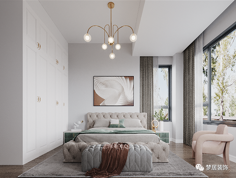 將美拉德風(fēng)格搭配應(yīng)用在臥室也是不錯的選擇,棕色系自帶的低調(diào)、踏實營造出舒適的休憩氛圍。在舒適的床品之上點綴一條棕色蓋毯,讓居者在微涼的晚秋時節(jié),更能感受到屬于家的暖意。