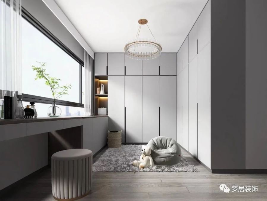 客廳色彩安靜舒適,空間優(yōu)雅自然;臥室沒有過于繁雜的裝飾,慵懶舒適的氛圍漸漸濃厚,給人帶來無限享受;質(zhì)感滿滿的衣帽間帶來精致的高級(jí)享受,滿足女主人的個(gè)性化需求。從居家著手,去掉繁瑣的裝飾,簡約清爽的環(huán)境,回歸本真生活。