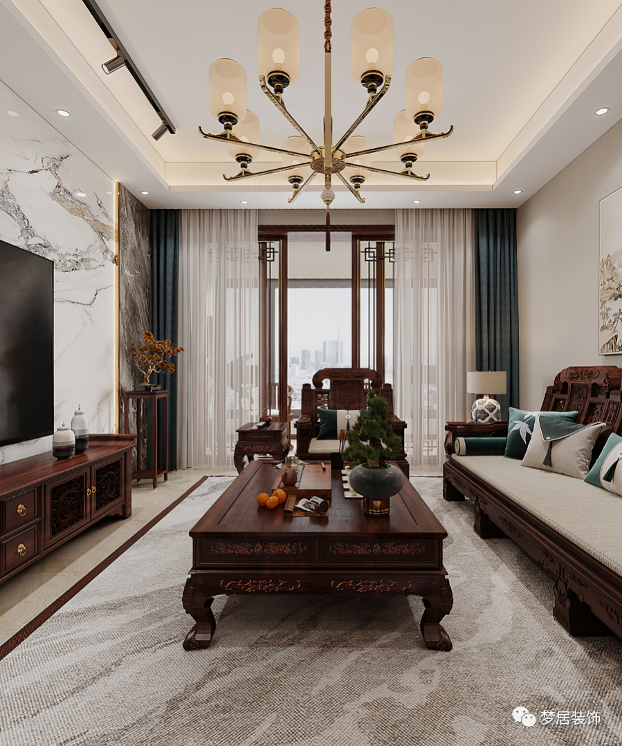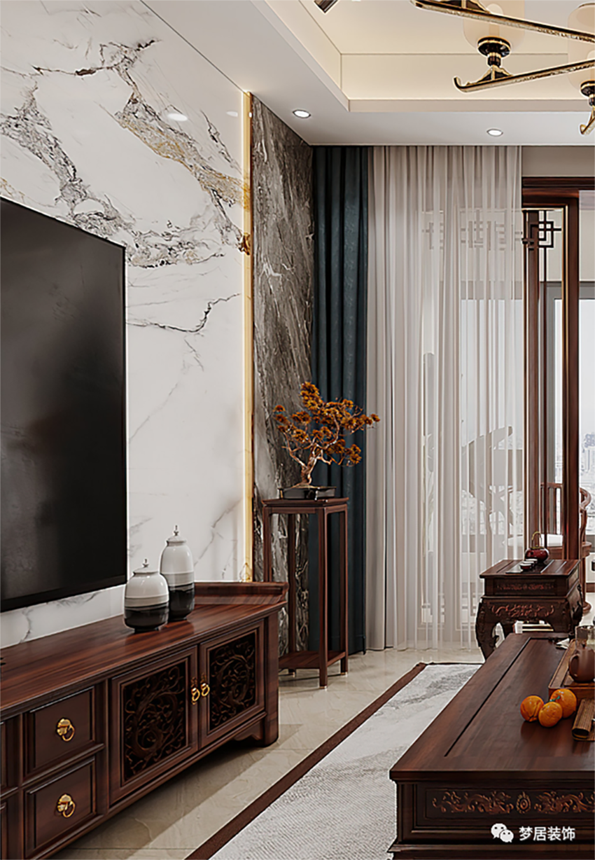 中式設(shè)計繼承了傳統(tǒng)中式穩(wěn)重敦厚的格調(diào),在有意與無形、輕靈與淳厚中相遇邂逅,創(chuàng)作出一個莊重、朗澈、歸真的中式家居空間。傳統(tǒng)中式設(shè)計的形制、裝飾元素,凝結(jié)在現(xiàn)代空間中,創(chuàng)造出適應(yīng)當代家居美學的中式設(shè)計空間。