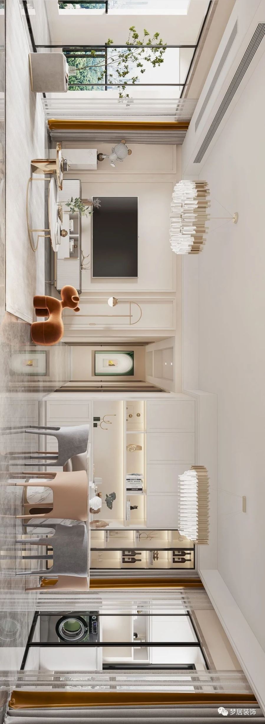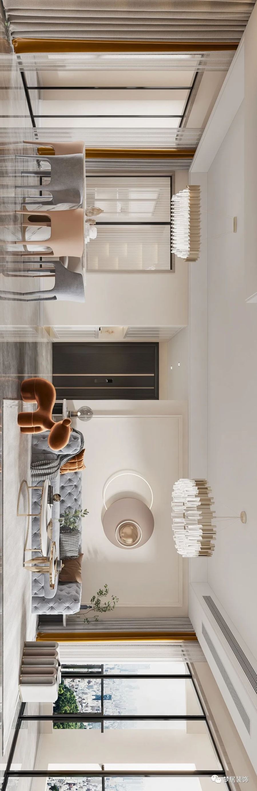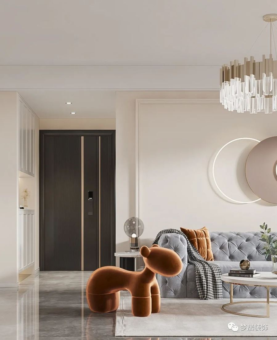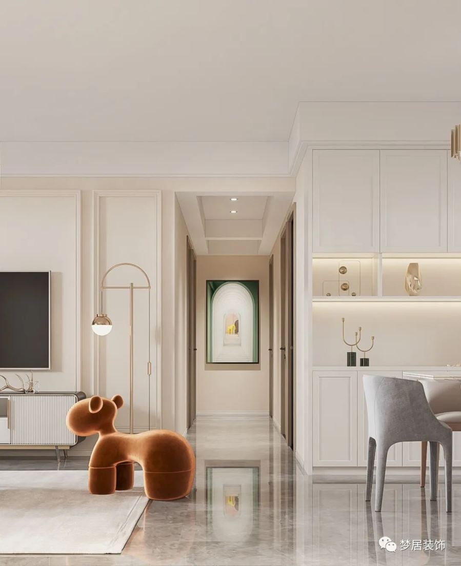 本案以干凈細膩的色彩打造出溫柔婉約的奶油風家居,空間與治愈溫度的完美結合,甜美、細膩、浪漫。低飽和度色彩搭配輕柔、開闊、明朗的設計,溫柔的淺杏、浪漫的淺灰,知性浪漫的金棕...像秋日溫和的暖陽,治愈且溫柔,空間漫開一片如詩的浪漫時光。