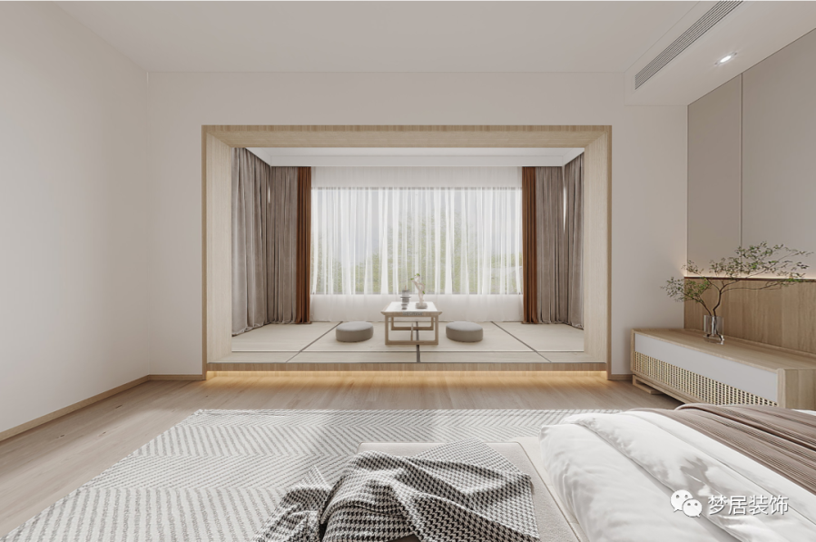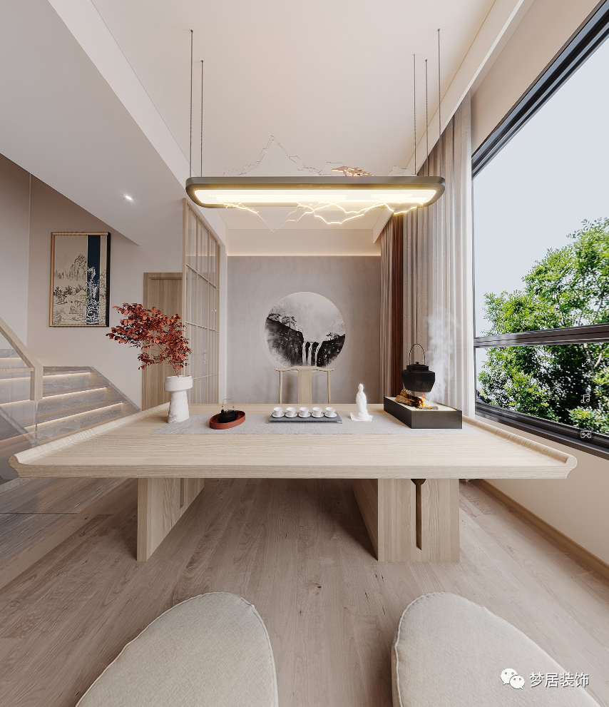 人與自然融合,將內(nèi)心的平和和寧靜致遠引入室內(nèi)空間,讓回家是一種回歸和放松的體驗,遠離城市的喧囂和浮躁。