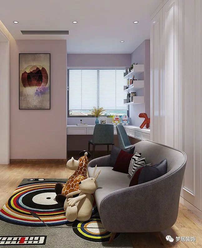 家有神獸,客廳的發(fā)揮考慮孩子成長(zhǎng)和教育,在設(shè)計(jì)方面有所偏重。低齡的孩子在上學(xué)前幾年基本上是以玩兒為主,客廳可以裝修成孩子的活動(dòng)區(qū),去掉大茶幾和帶棱角的家具,為孩子騰出更多活動(dòng)區(qū)域;孩子大了,教育是繞不開(kāi)的話(huà)題,除了玩樂(lè)之外,也要考慮興趣培養(yǎng),比如學(xué)鋼琴、畫(huà)畫(huà)之類(lèi)的,這些空間也可以提前留出來(lái)。