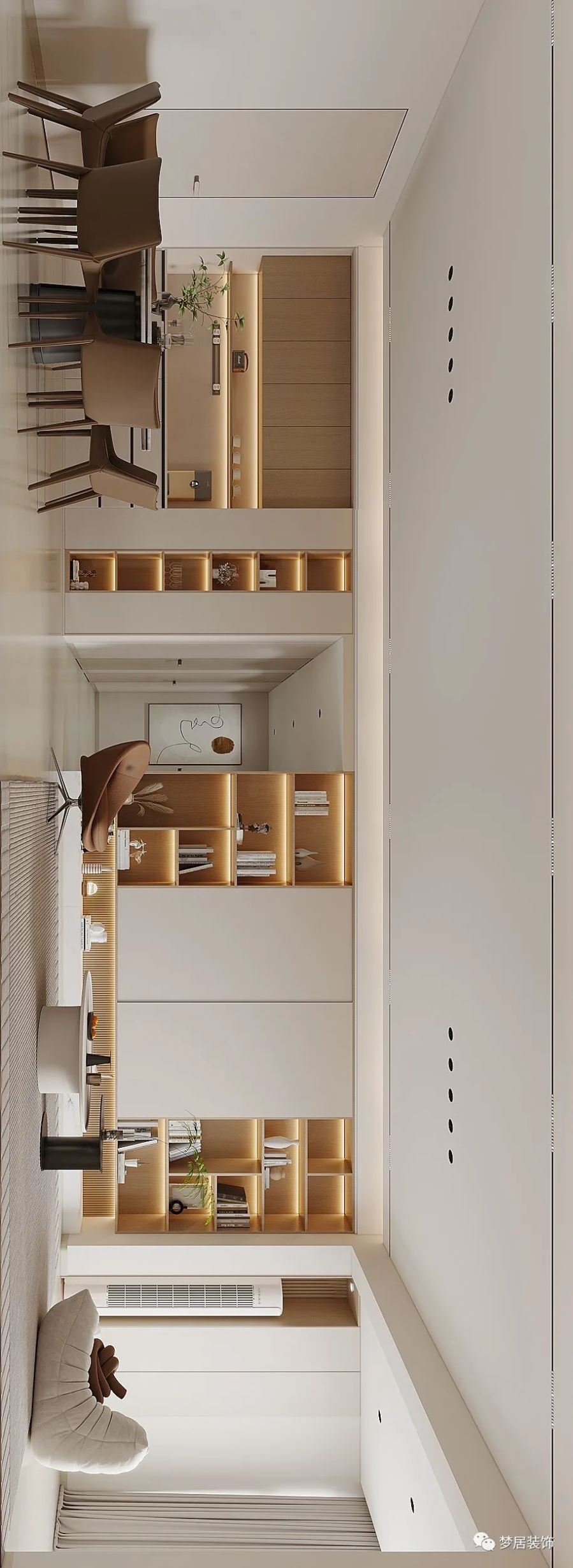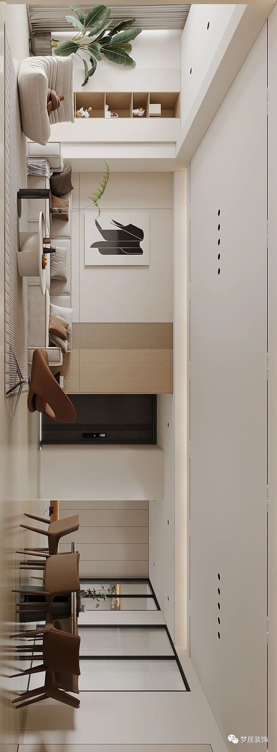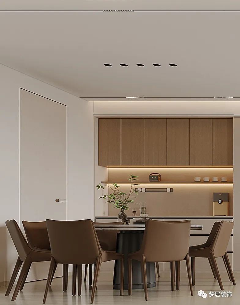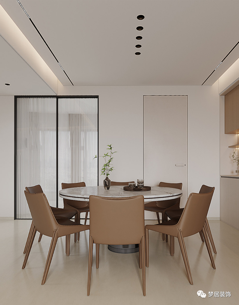 溫柔奶油風(fēng),微甜的奶茶色和醇厚奶咖色層層漸進,清淡透亮之中疊加變化,賦予了整個空間濃郁而純粹的香甜優(yōu)雅,搭配綠植,溫潤而高級,十分療愈。