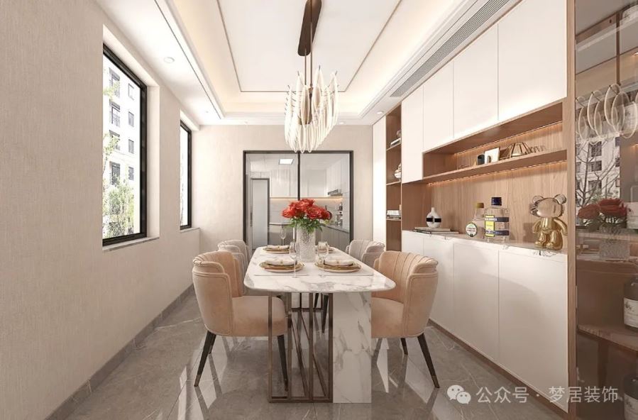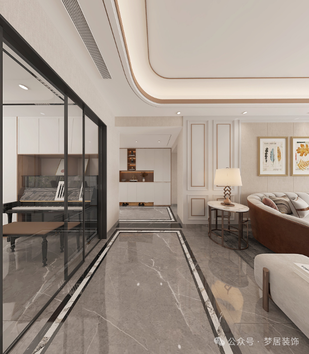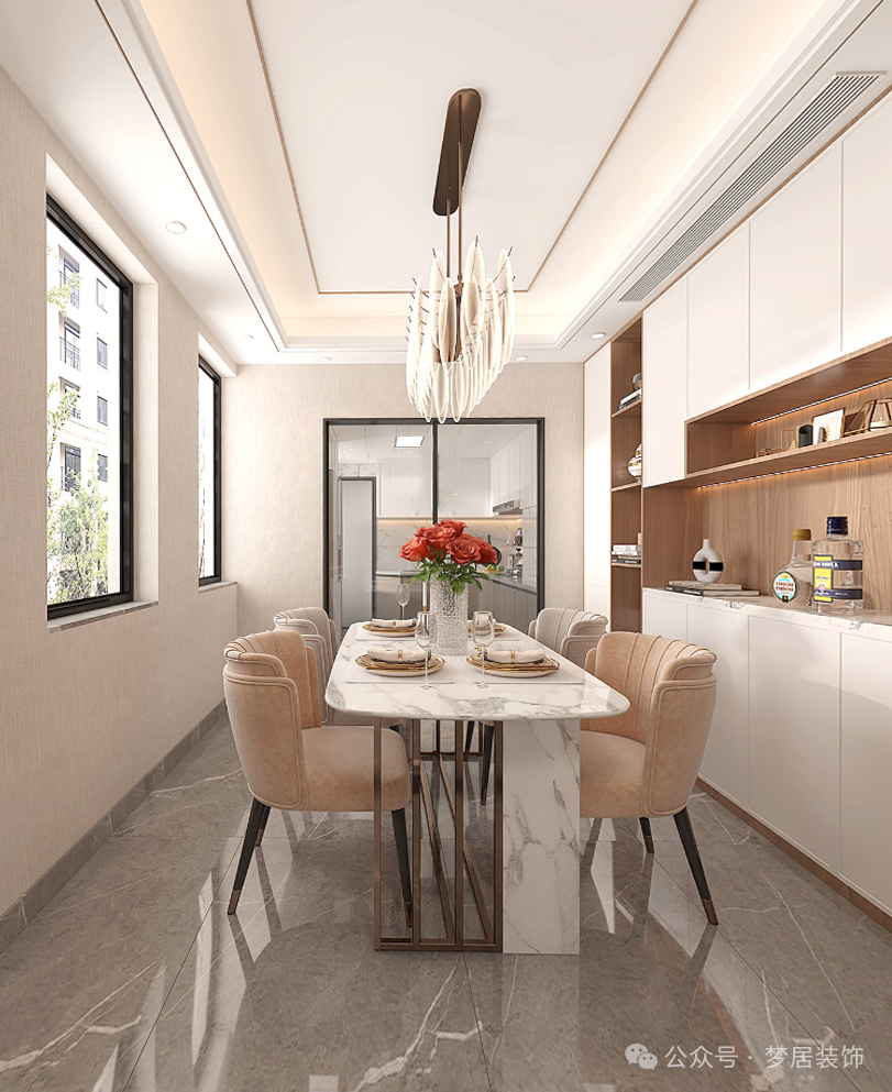 儀式感是平淡日常中的“領銜主演”,家除了負責將所有喧囂與浮躁隔絕在外,也承擔著讓生活更具儀式的使命。步入室內,現(xiàn)代簡約與優(yōu)雅共生的質感撲面而來,設計師摒棄高飽和的色彩,大面積保留材質的原生態(tài)質感,同時嵌入金屬、玻璃等細節(jié),正式為家開啟一場愜意的現(xiàn)代輕奢美學。