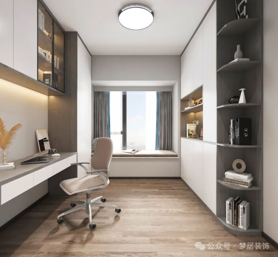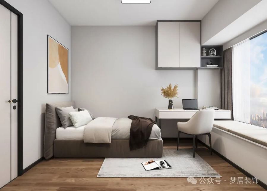 次臥選擇在靠窗區(qū)域做了一個學(xué)習(xí)的空間,自然光的學(xué)習(xí)環(huán)境也對視力健康有好的影響。
