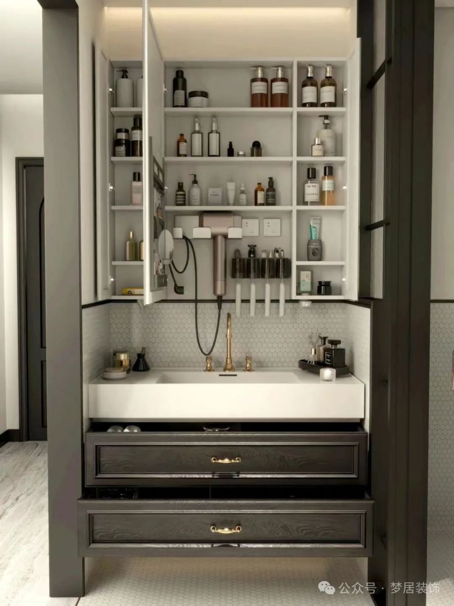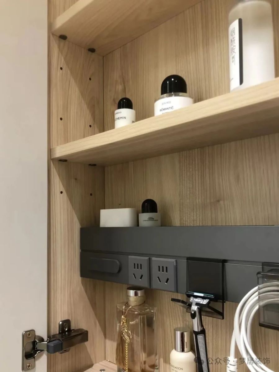 一般戶型的衛(wèi)浴空間都不算太大,空間真是太寶貴了!雜物多擺在明面又亂糟糟的!在浴室鏡柜里加裝插座,吹風(fēng)機、電動牙刷、剃須刀等小電器使用、充電就太方便啦。