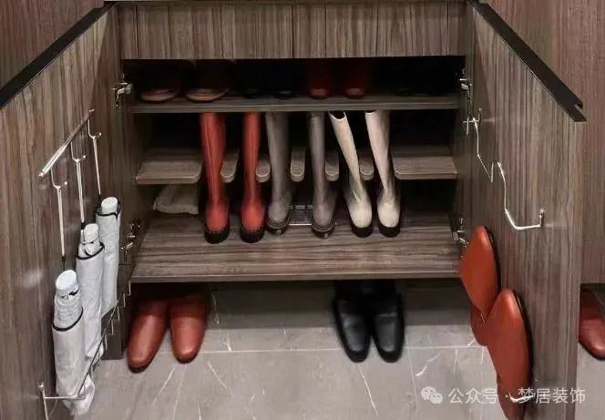 大多數(shù)的鞋柜都是普通層板設(shè)計,放平常的休閑鞋運動鞋還行,但是到了冬天,想放雙長靴就成了問題。平放太占空間,折著放又容易變形。