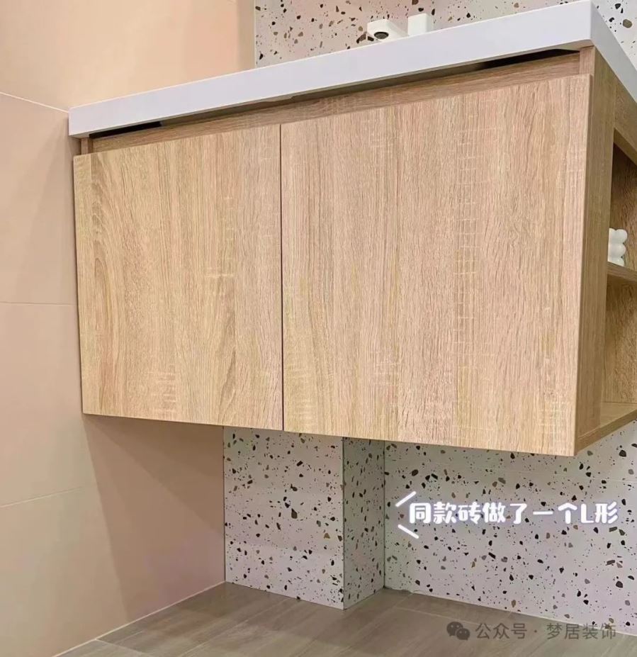 如遇到此類特殊情況,需與施工方協(xié)商溝通,商議出合理的解決方案。可以考慮加厚墻體做假墻排,后期安裝上柜子也就看不見啦。顏值高也好清潔。