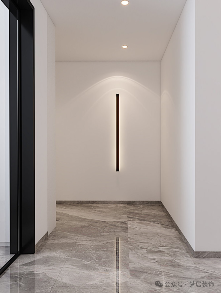 入戶的留白為空間贏得了更多延展,干凈利落的線形燈裝飾,清新明快。整個(gè)空間自由開(kāi)闊,空間與光影的對(duì)話在細(xì)節(jié)中凸顯。