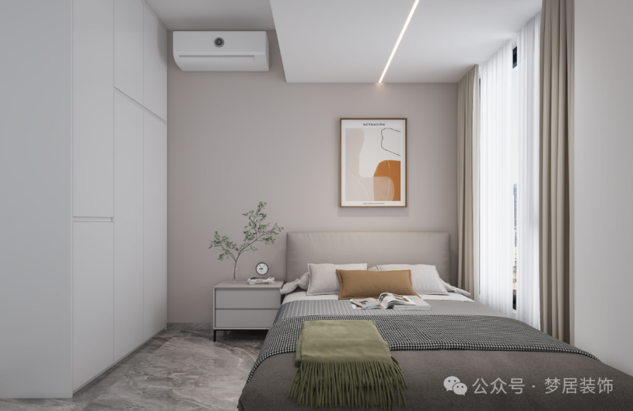 臥室在裝飾和細(xì)節(jié)上也花費(fèi)了一番心思,沒(méi)有花哨的裝飾,簡(jiǎn)約的搭配看著令人舒心,作為相對(duì)私密獨(dú)立的休憩空間,給心靈一份愜意時(shí)光。